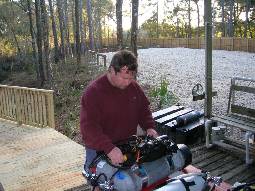 Chris preparing his gear.