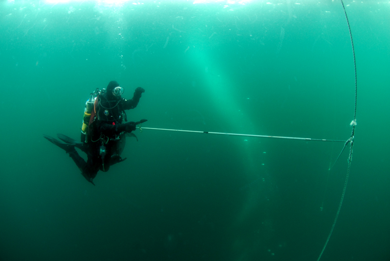Great vis top side, Georges bubbles rising from the wreck.